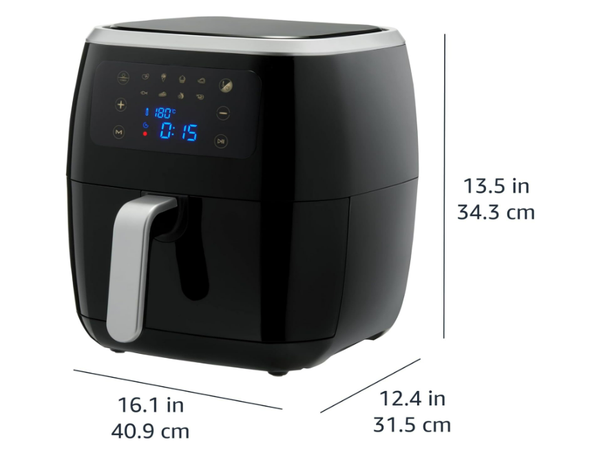 - Includes a 6-litre air fryer with a detachable, dishwasher-safe, nonstick plate and tank